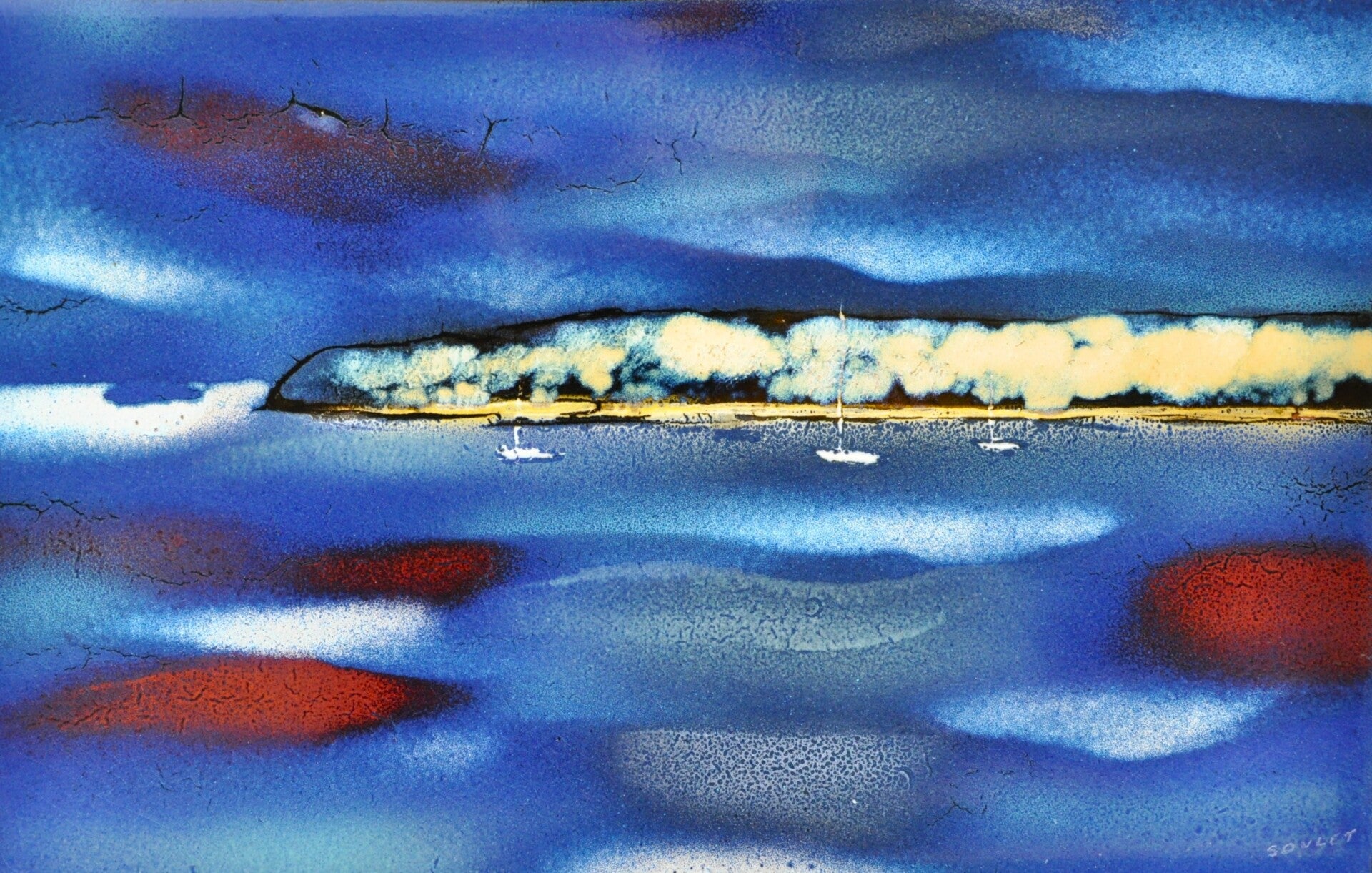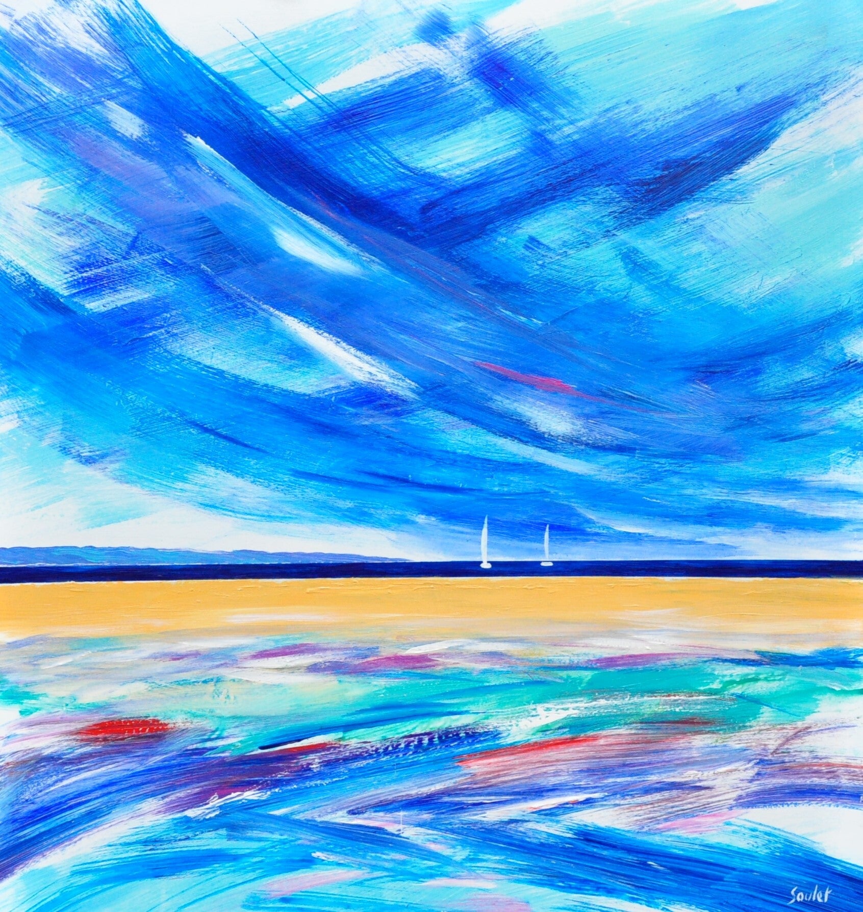 Les aquarelles de jp soulet invitent à la contemplation. Avec une palette de couleurs douces et des jeux de transparence, ces œuvres capturent l'essence de l'éphémère et la beauté de l'instant. En Bretagne, c'est bien connu, les nuages sont bleus....!! 40 x 35 cm environ sur papier 300gr.